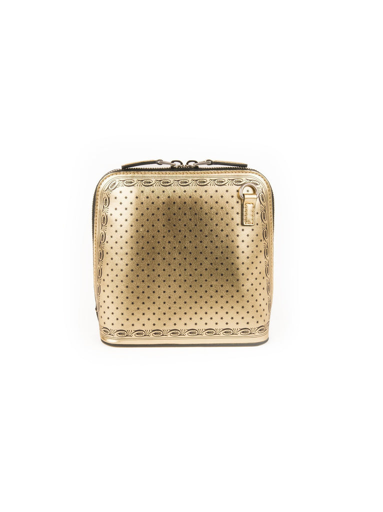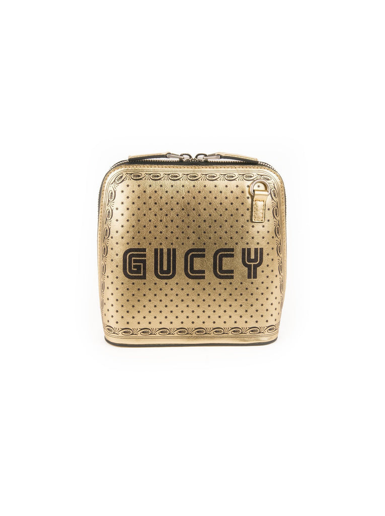 Guccy Script Dome Metallic Leather Crossbody Bag - Gold Guccy Script Dome Metallic Leather Crossbody Bag - Gold