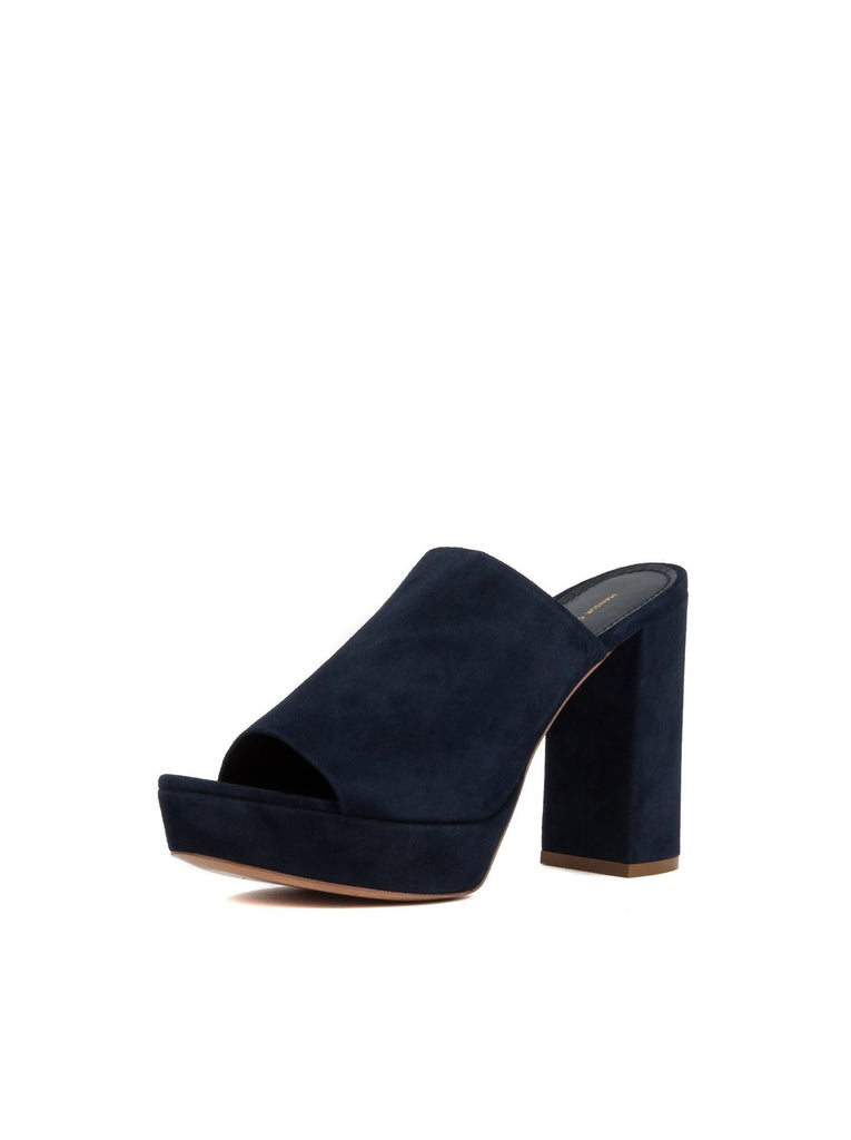 Suede High Heel Peep Toe 110mm Mule - Navy Suede High Heel Peep Toe 110mm Mule - Navy