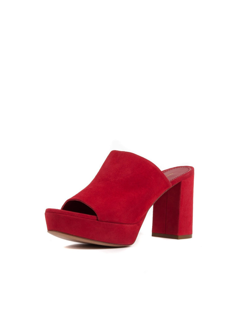 Suede Platform 90mm Peep Toe Mule - Red Suede Platform 90mm Peep Toe Mule - Red